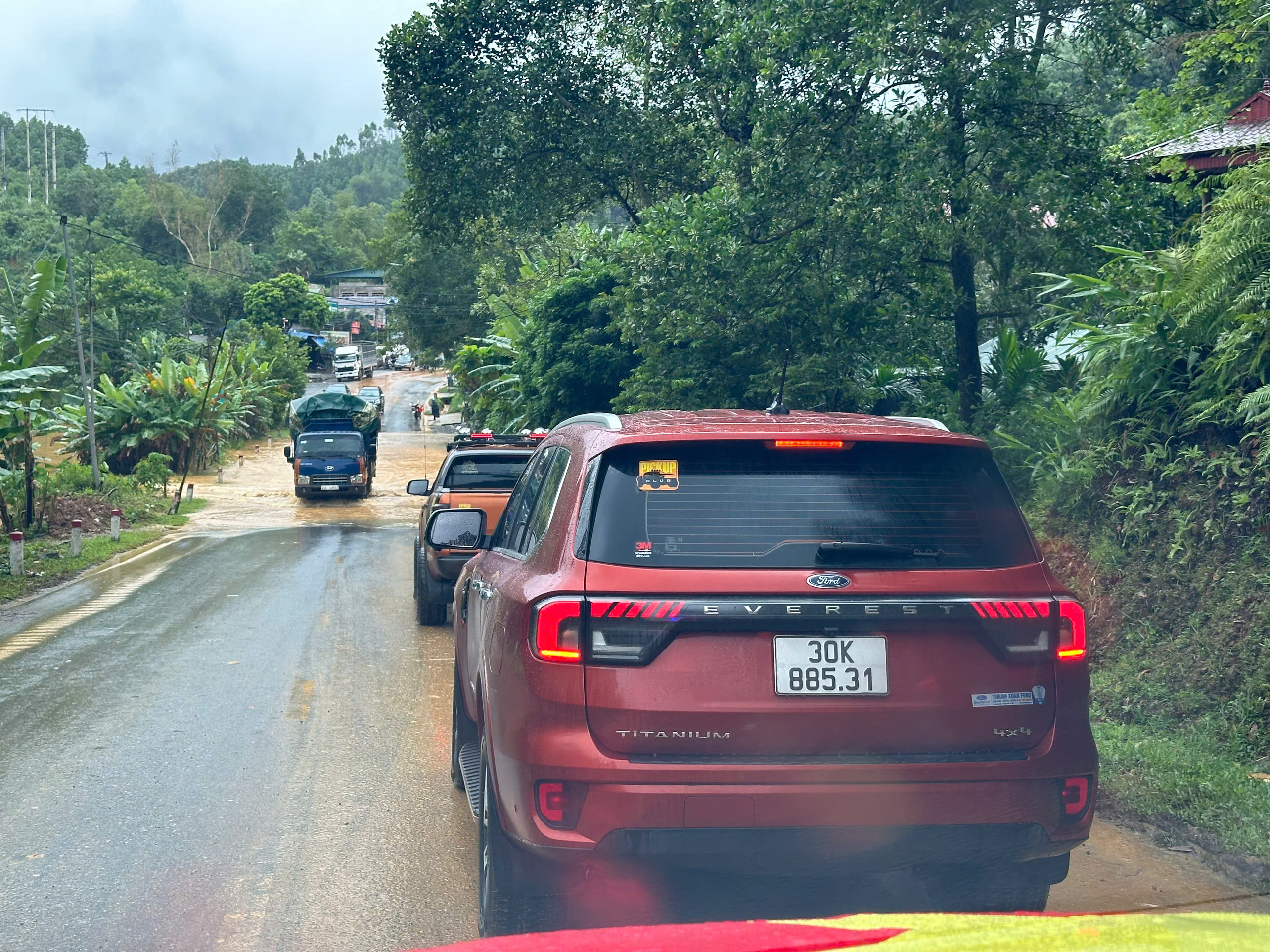 trên đường đến được điểm tập kết hàng đoàn thiện nguyện công ty Đức Tâm đã phải đi qua rất nhiều đoạn đường ngập, sạt lở.