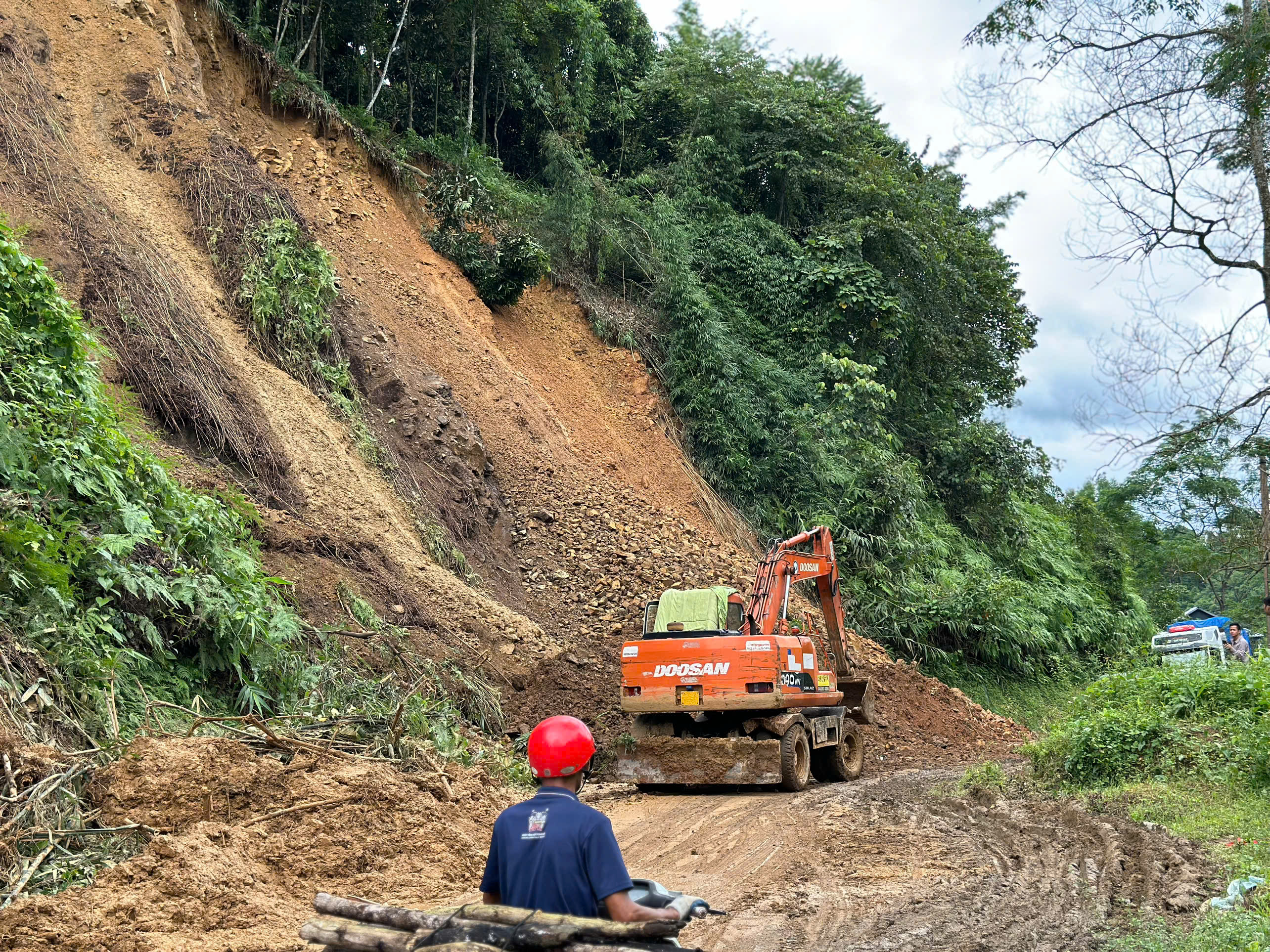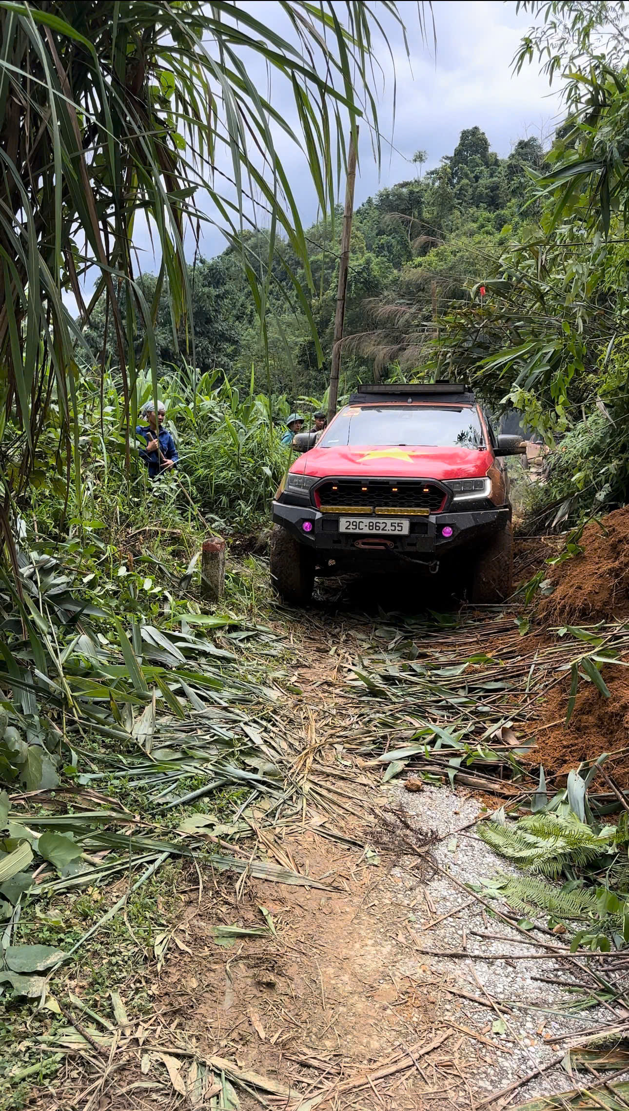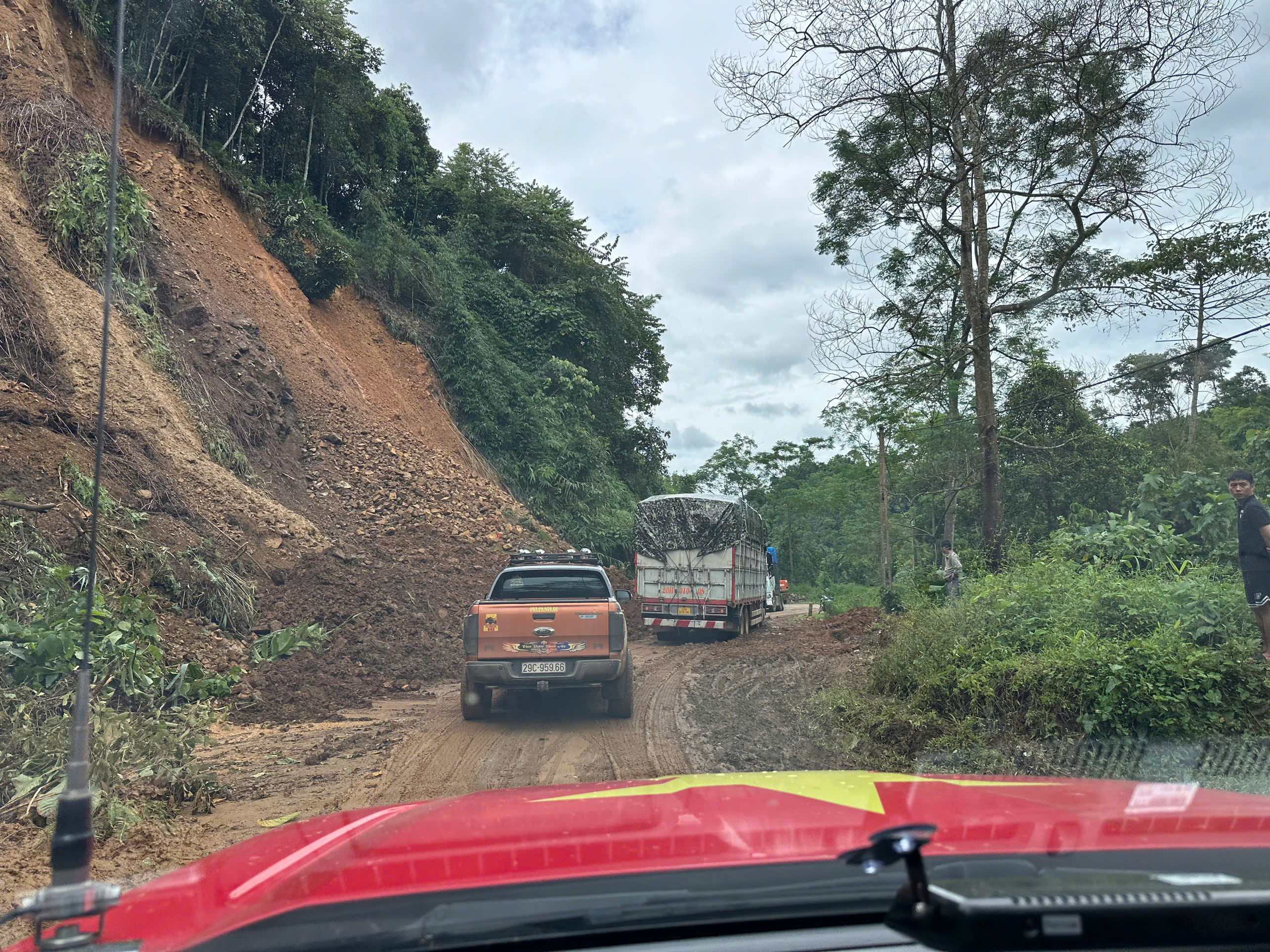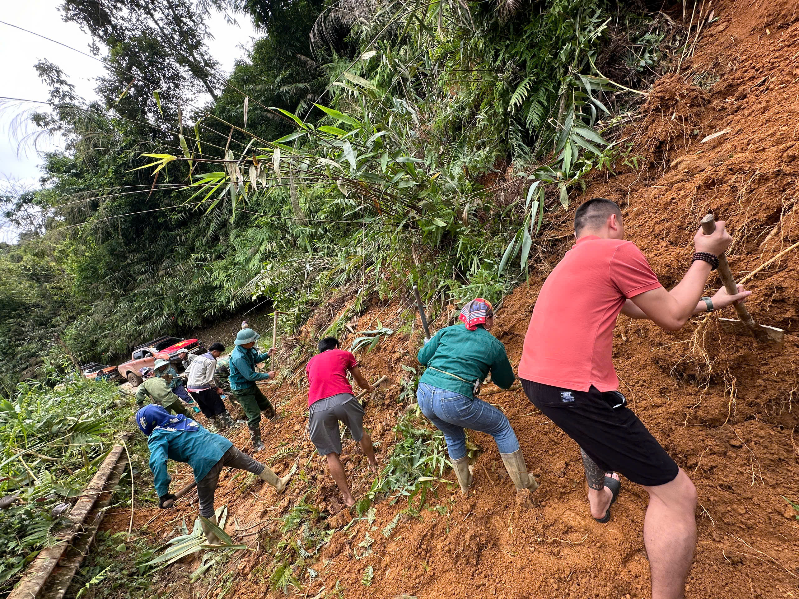 khi đến địa phận xã Bằng Lãng đoàn đã phải dừng lại do đường đi bị sạt lở. Rất may mắn chỉ sau khoảng 10 phút bà con ở đây đã hỗ trợ đoàn san đường để xe đi qua.