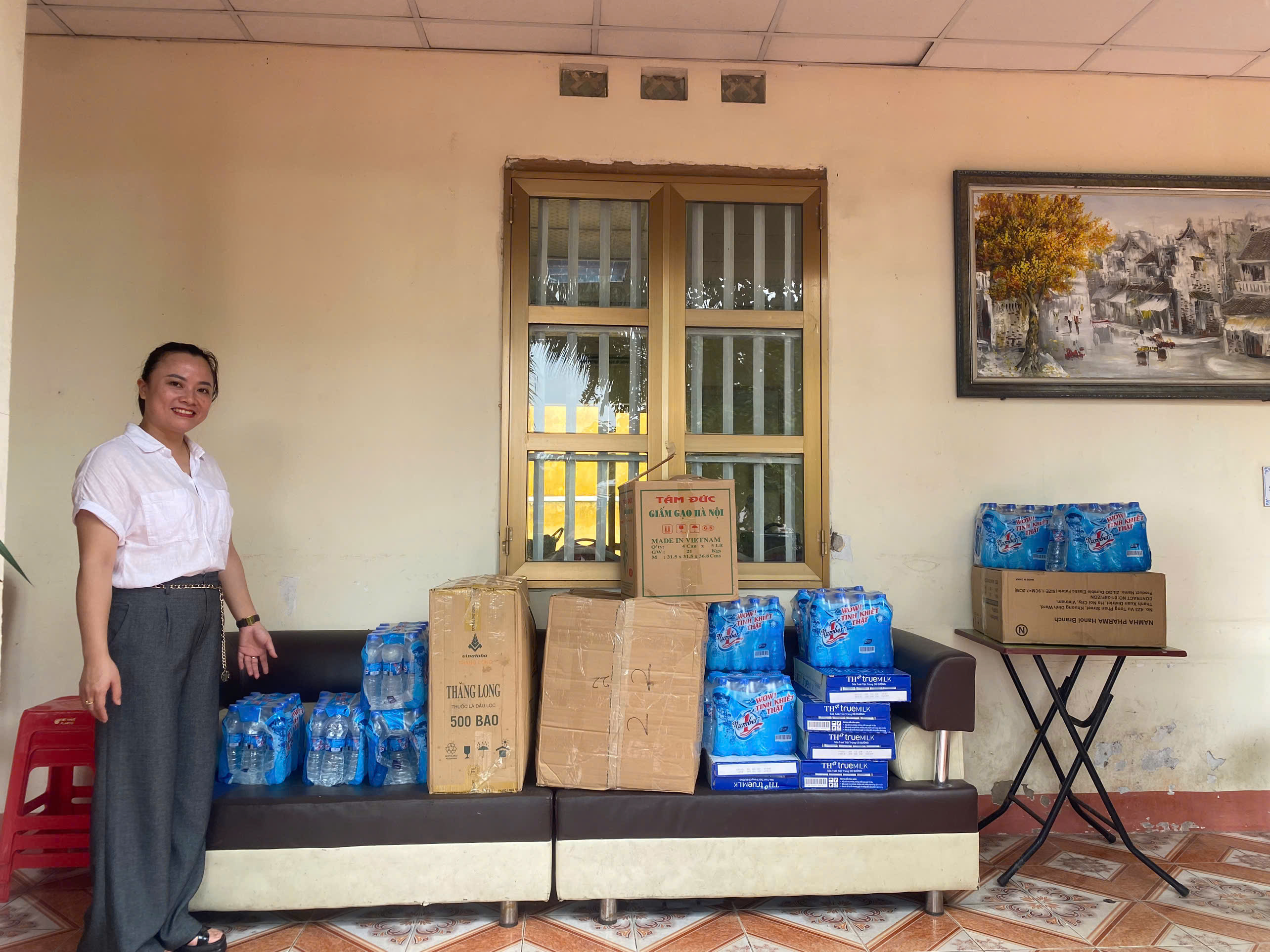 Công ty Đức Tâm hỗ trợ nhu yếu phẩm cho trường THCS Nha Trang tại TP Thái Nguyên.