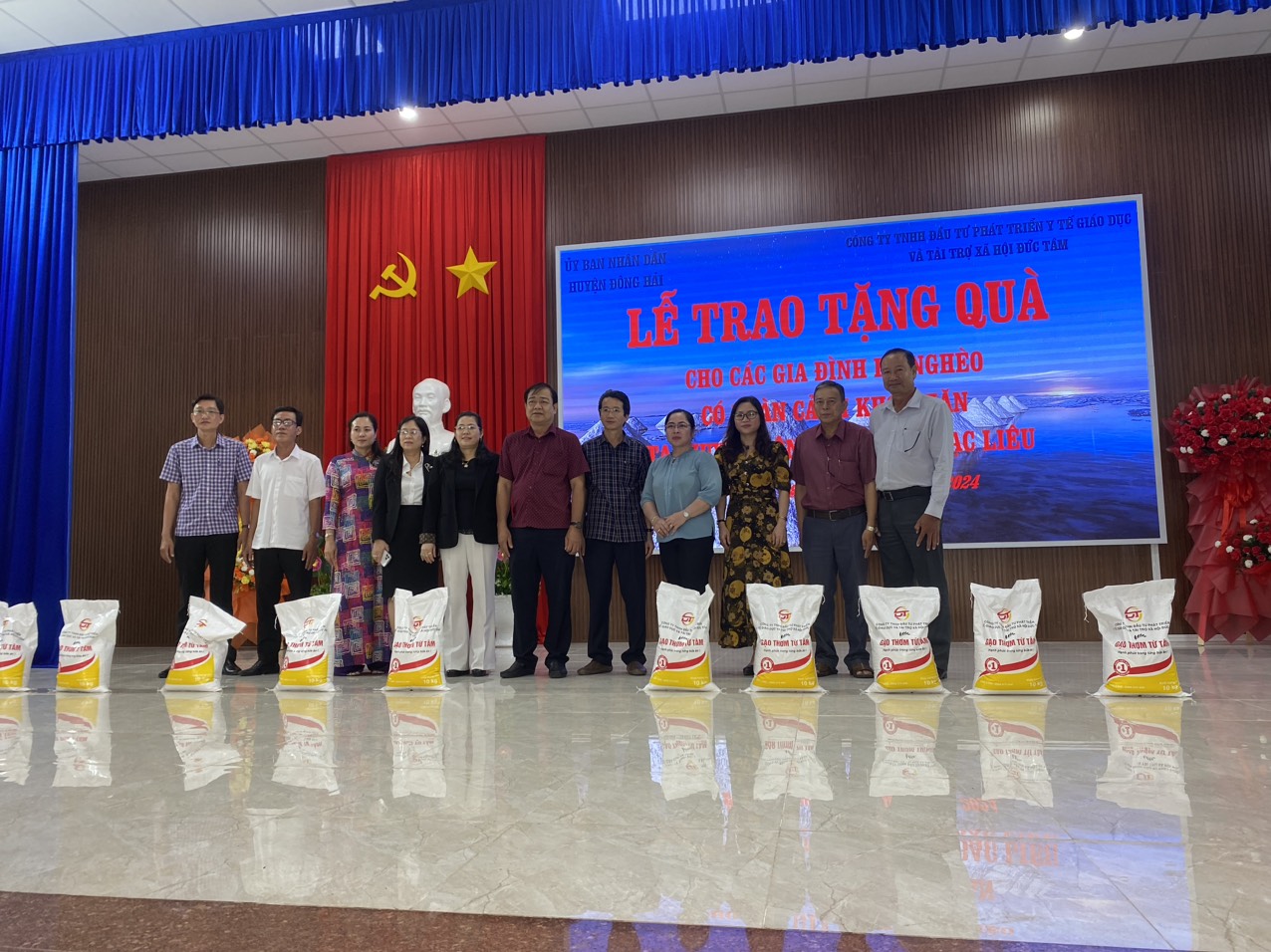 Ngày 02/02/2024 Công ty TNHH đầu tư phát triển y tế giáo dục và tài trợ xã hội Đức Tâm kết hợp với UBND Huyện Đông Hải tỉnh Bạc Liêu trao tặng cho những cháu học sinh có hoàn cảnh khó khăn trên địa bàn 20 tấn gạo. Với mong muốn giúp đỡ bà con có cái tết ấm no, vui vẻ, hạnh phúc hơn.