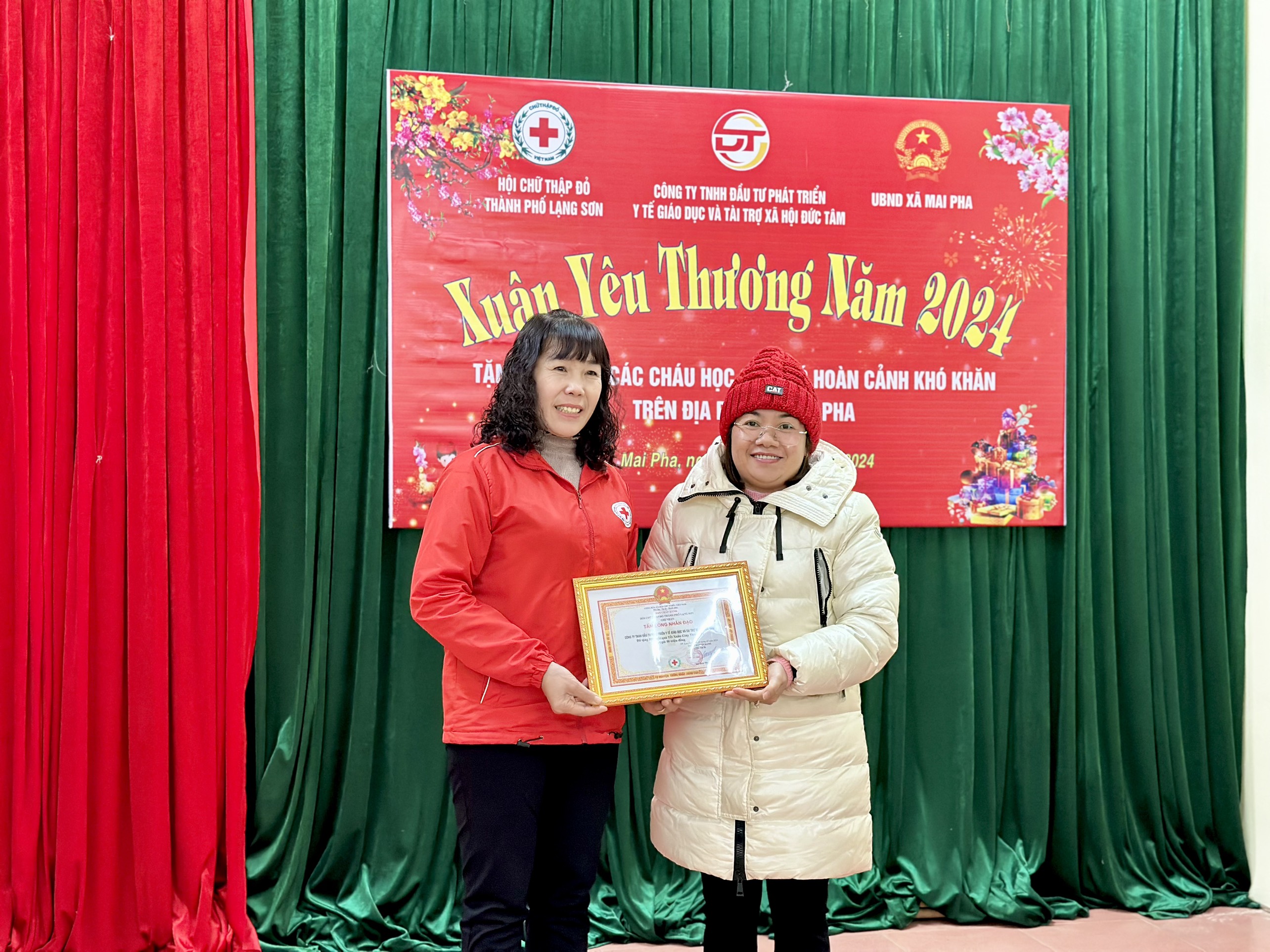 Ban Chấp Hành Hội Chữ Thập Đỏ Thành Phố Lạng Sơn trao bằng ghi nhận " Tấm Lòng Nhân Đạo" cho công ty TNHH đầu tư phát triển y tế giáo dục và tài trợ xã hội Đức Tâm.