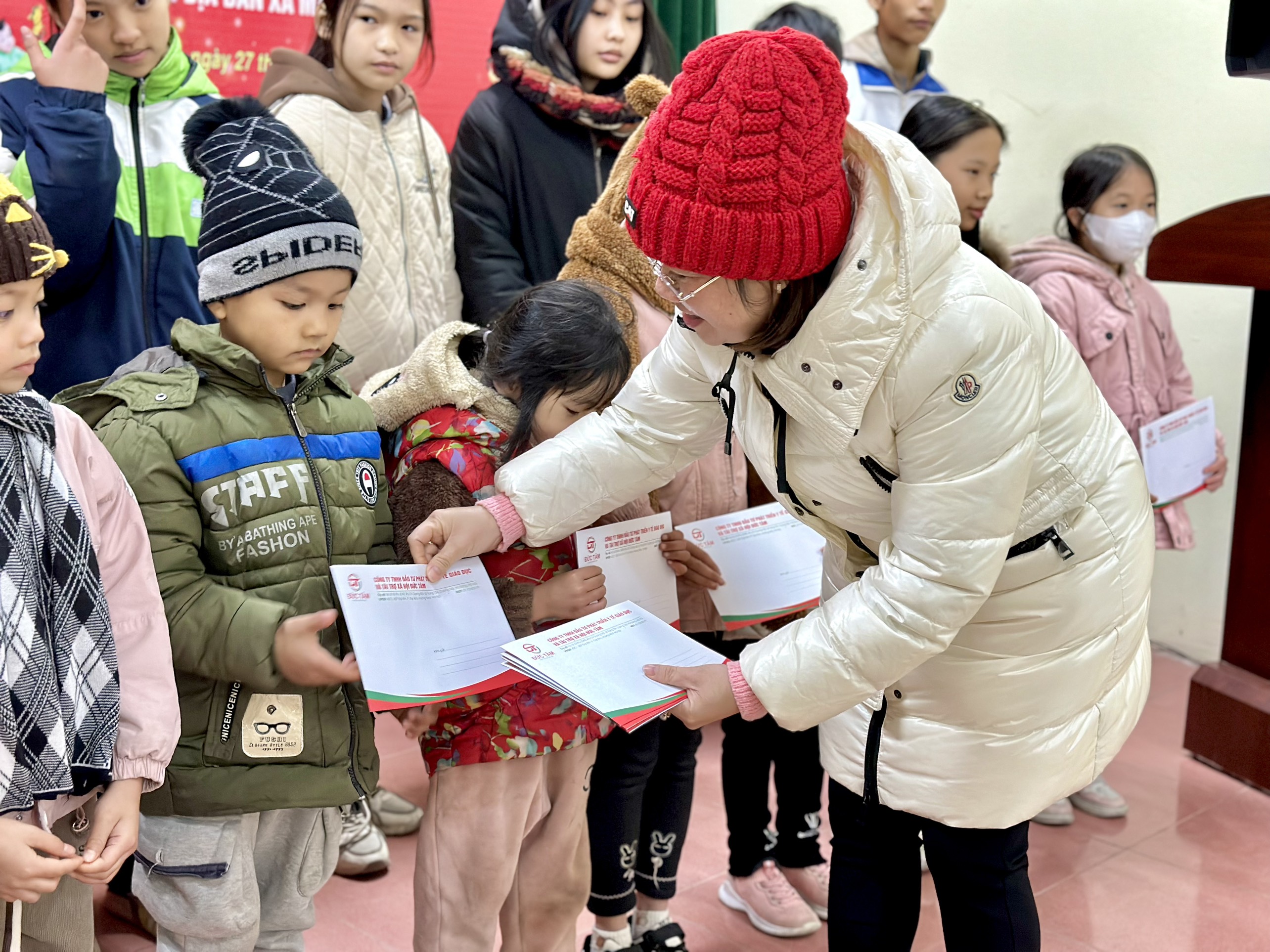 Đại diện công ty, giám đốc Nguyễn Thị Thu cùng các cán bộ công ty Đức Tâm đã tới Nhà Văn Hoá thôn Bình Cằm, xã Mai Pha, Thành Phố Lạng Sơn, Tỉnh Lạng Sơn để trao quà cho các cháu học sinh có hoàn cảnh khó khăn. Với mong muốn giúp đỡ phần nào cho gia đình các cháu có một cái tết 2024 ấm no hơn, đầy đủ hơn.
